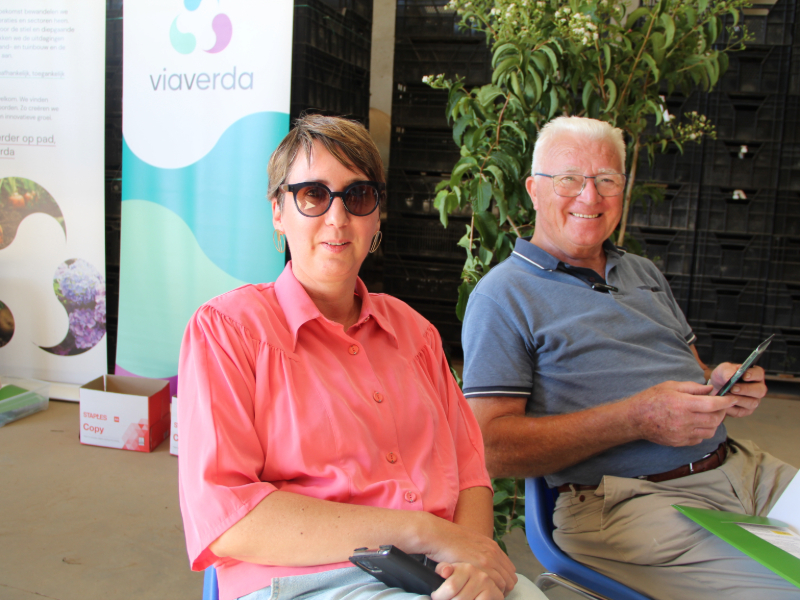 Viaverda-onderzoeker Liesbet Van Remoortere en Frans Goossens, de grondlegger van het waarschuwingssysteem in de sierteelt. |