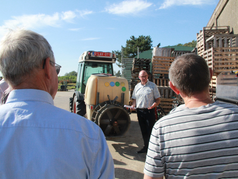 Pascal Braekman (Agentschap Landbouw en Zeevisserij) legt verschillende systemen van driftreducerende doppen uit. |