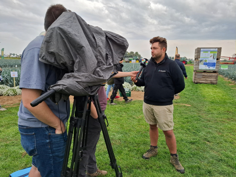 Elke dag werd door onderzoekers een rondleiding gegeven op het groenteplatform. Daarop werden verschillende proeven en projecten toegelicht. Jonas Bodyn geeft uitleg aan PlattelandsTV. Vanaf dit weekend zijn reportages op de themazender te zien. Annelien Tack besprak onder meer tripsbeheersing en het inzetten van de plant Lobularia maritima.