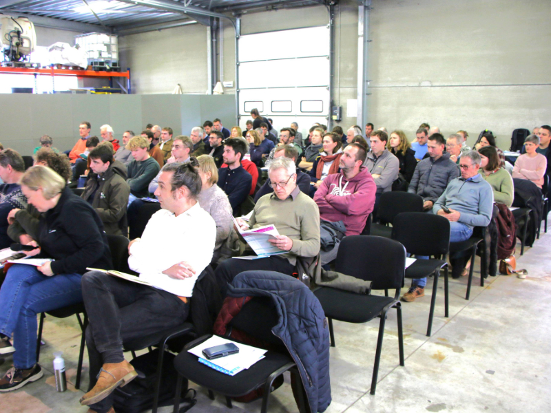 Het algemene gedeelte voor alle telers vond in een van de loodsen plaats. |