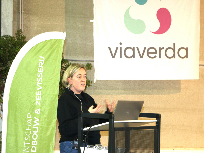Daarna volgden presentaties over nieuwe technologieën en AI voor gewasmanagement door Ruth Hofman (ILVO) en over de toekomst van biologische sierteelt in pot door Ilse Delcour (Viaverda). Bart Thoelen (Bio zoekt boer, Boerenbond) besprak de hefbomen bij omschakeling naar bio voor de sierteeltsector.