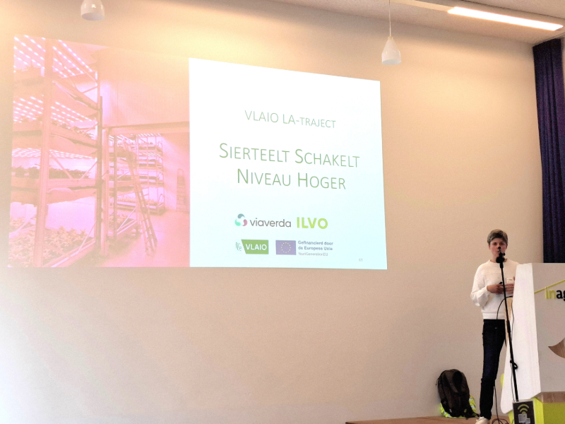 | Viaverda-onderzoeker Annelies Christiaens gaf meer uitleg over energiezuinige klimaatsturing in een vertical farm. |