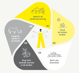 Door je teeltplanning diverser te maken, creëer je een diverse en gezonde bodembiologie. Die verbetert de nutriëntenkringloop, reduceert ziektes en plagen en laat neerslag makkelijker in de grond dringen.