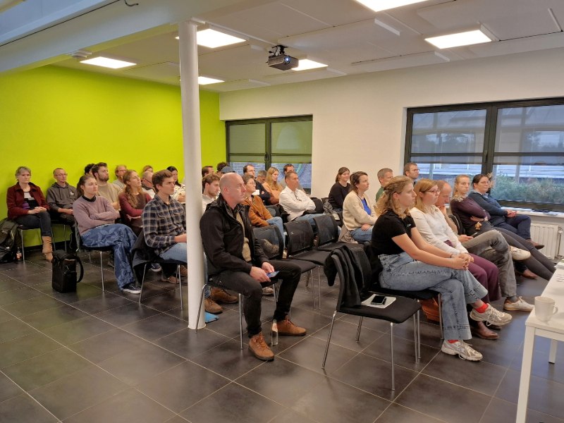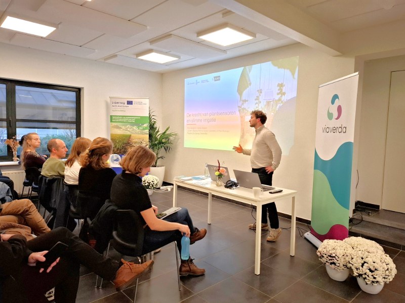 Daarna presenteerden Flor Hiergens (UGent) en Paulien De Clercq (Viaverda) het gebruik van plantsensoren als hulpmiddel om watertekorten sneller te detecteren. Zij deelden hun praktische bevindingen uit de proefopstellingen en wezen op de meerwaarde van real-time gegevens voor teeltsturing.