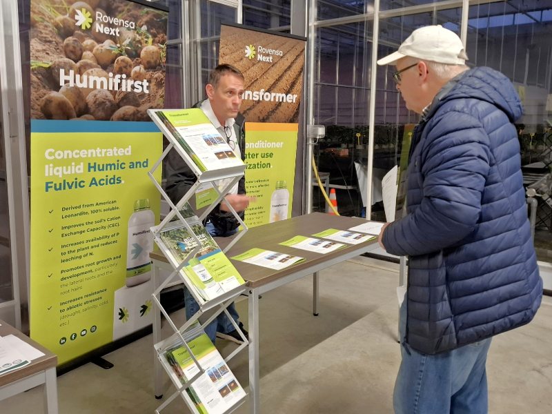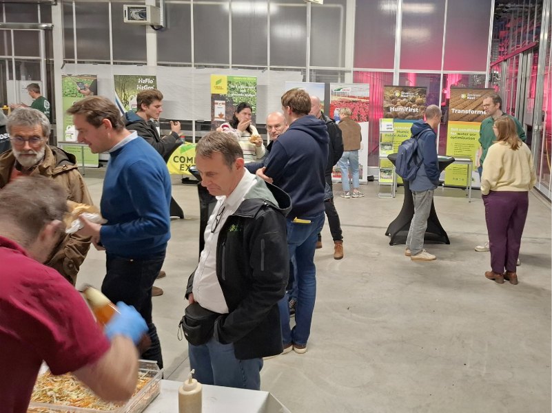 Na het theoretisch gedeelte met de presentaties volgde een technologiebeurs, waarop bedrijven zoals Rovensa, ICL, DCM, Compo, Bion, Crodeon en IO Things hun nieuwste producten en technologieën toonden op het vlak van sensoren en droogte-mitigerende oplossingen. Ook het demonstratieproject SPUI (zuiveringstechnieken voor spuistroom in de glastuinbouw) kwam aan bod en daarnaast werden ook enkele plantsensoren, die gebruikt werden in het onderzoek, door UGent tentoongesteld.
