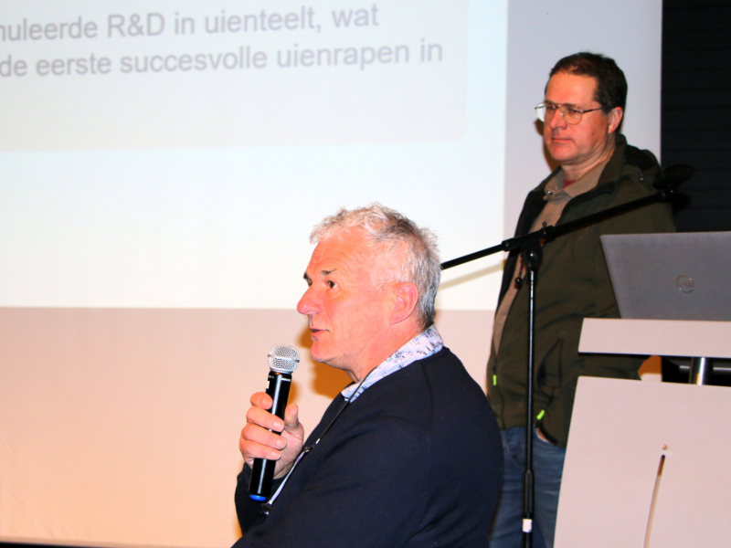 Na de pauze ging Staf Antoons van Bayer dieper in op Fusarium in ui. Hij schetste de actuele situatie en gaf enkele aandachtspunten en beschikbare middelen om de ziekte beter te voorkomen. Vervolgens stelden Bennie Poppe en Frank Kerckhaert van Agri Poppe een innovatief rooisysteem voor, een multi-cropsysteem dat inzetbaar is in zowel de aardappel- als de uienteelt.