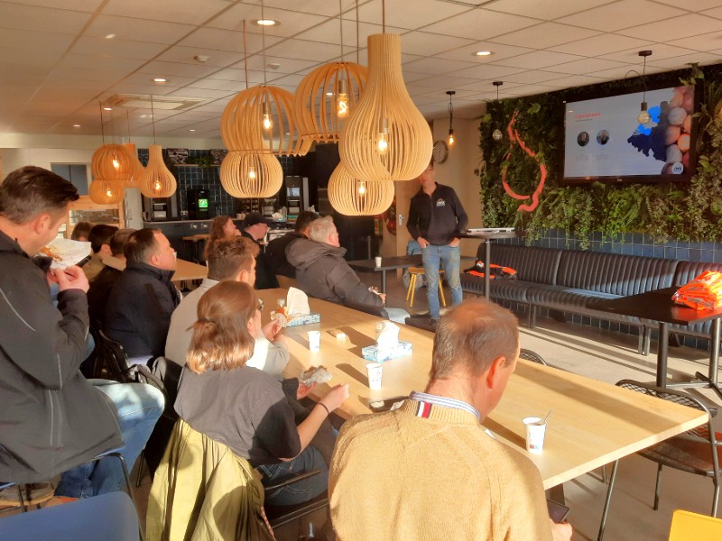 Kort na de middag werden we verwelkomd door Werner Verschueren, inkoper bij Wiskerke Onions en verantwoordelijk voor onder meer de Belgische regio. Na een smakelijk dessert gaf hij aan de hand van een presentatie een helder overzicht van het bedrijf Wiskerke Onions. Het gaat om een familiebedrijf dat voornamelijk focust op het sorteren en verpakken van uien, in alle mogelijke soorten en maten. Van roze zaaiuien en bananensjalotten tot rode plantuien: in dit bedrijf worden ruim tien soorten uien en look verwerkt. Wiskerke Onions is een grote speler in verpakkingen voor supermarkten en behoort tot de top drie van grootste Nederlandse verwerkers.