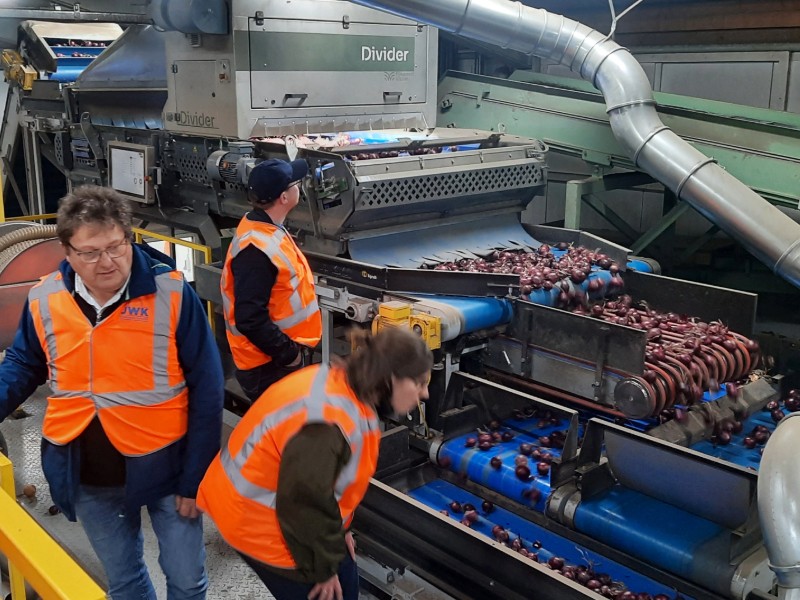 De deelnemers kregen onder meer een bedrijfsvoorstelling. Het bedrijf focust vooral op het sorteren en verpakken van uien. Een bedrijf in werking is altijd interessant om te zien.