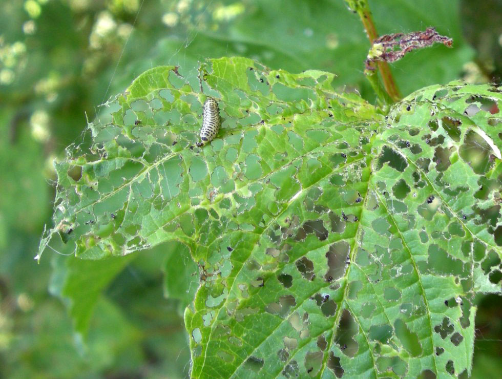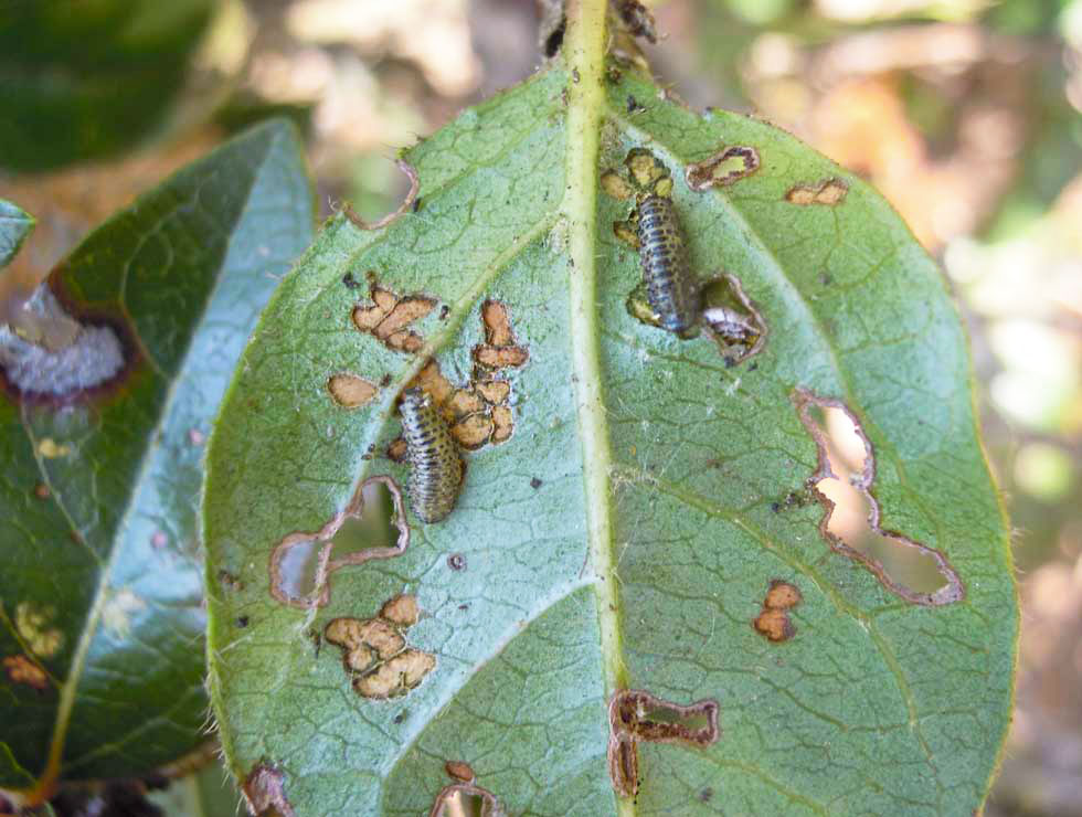 Het snoeien van de jonge scheuten kan reductie geven van het aantal larven. Breng het snoeiafval naar het containerpark om verspreiding te voorkomen.
