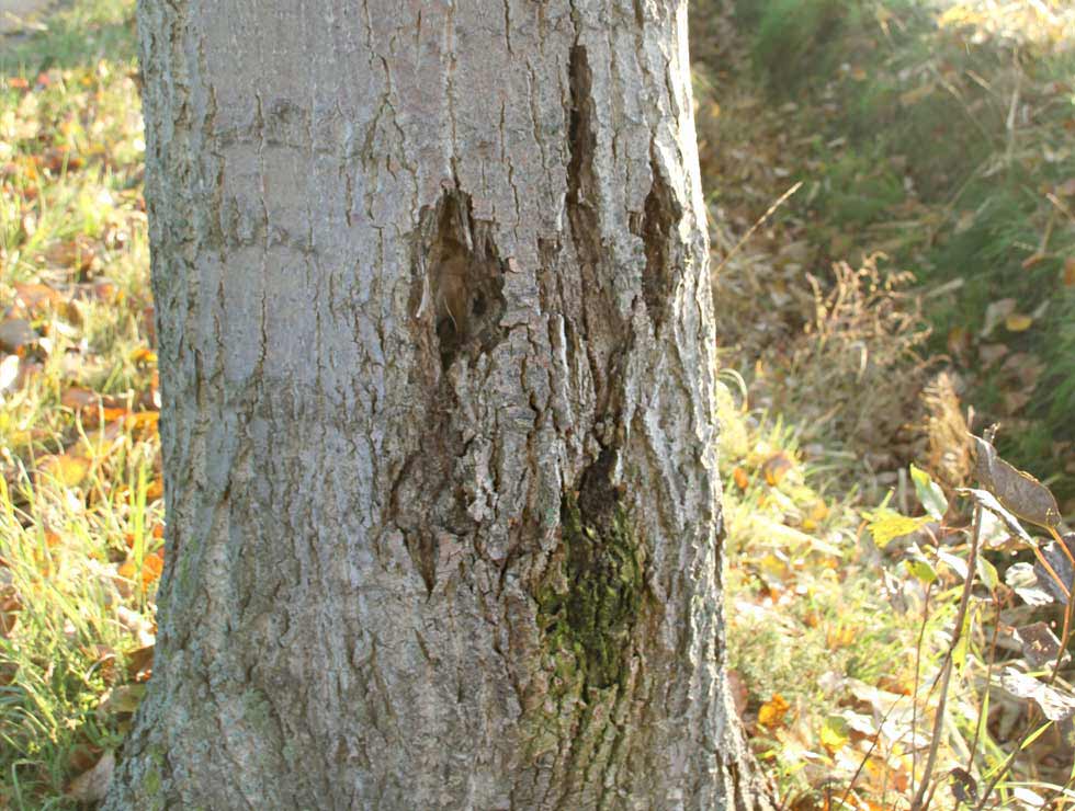 Het is belangrijk om mechanische schorsbeschadigingen aan de stam of stamvoet te voorkomen door niet te strak langs de stam te maaien. Schorsbeschadigingen kunnen eventueel preventief afgedekt worden om het binnendringen van de houtrupsen te vermijden.